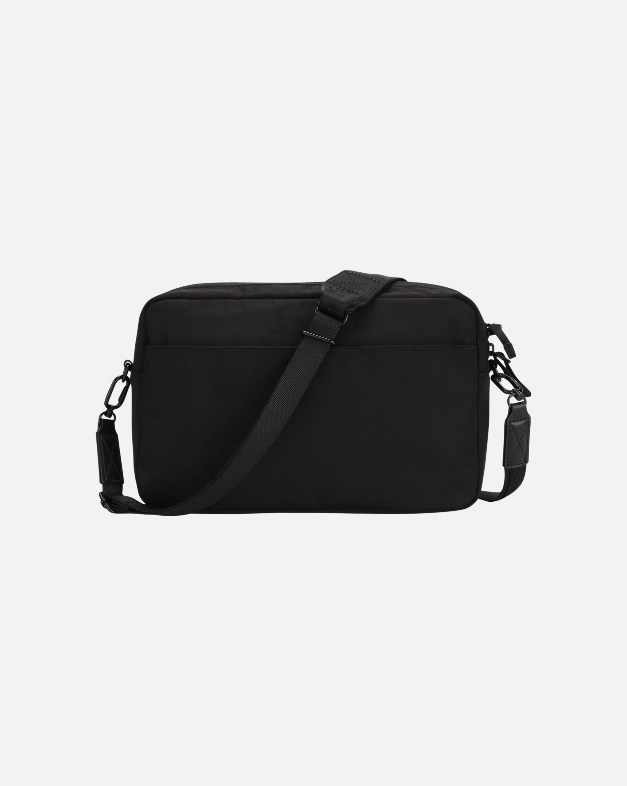 This large horizontal crossbody bag ideal for both travel and daily use. Made from twill fabric with a subtle shine and a structured silhouette. Soft to the touch with light water-resistant functionality.?Features a front flap pocket. which includes compartments for cards and cash. and embroidered wordmark logo. Includes a versatile strap with carabiner hooks allows for crossbody. wristlet. or clutch-style wear and multiple inner and outer compartments for storage. Also includes a hang-on loop for phone case attachment and a complimentary Kangol graphic sticker?
