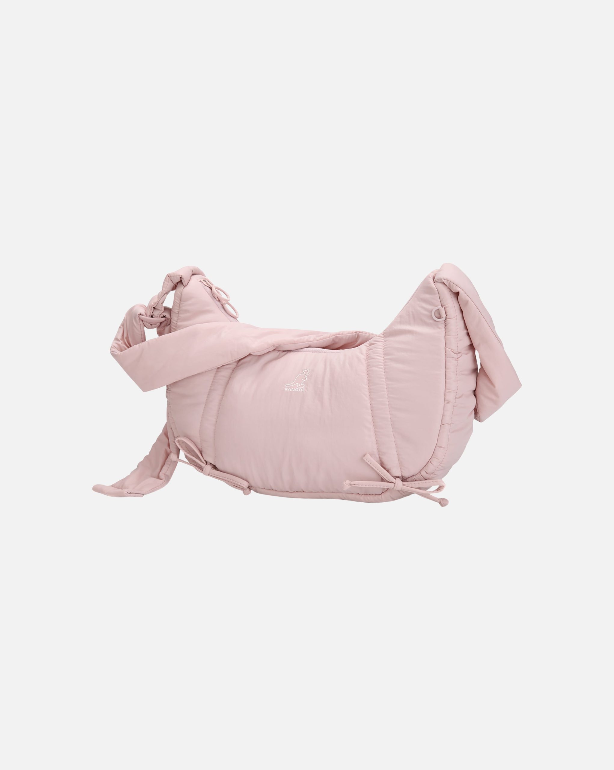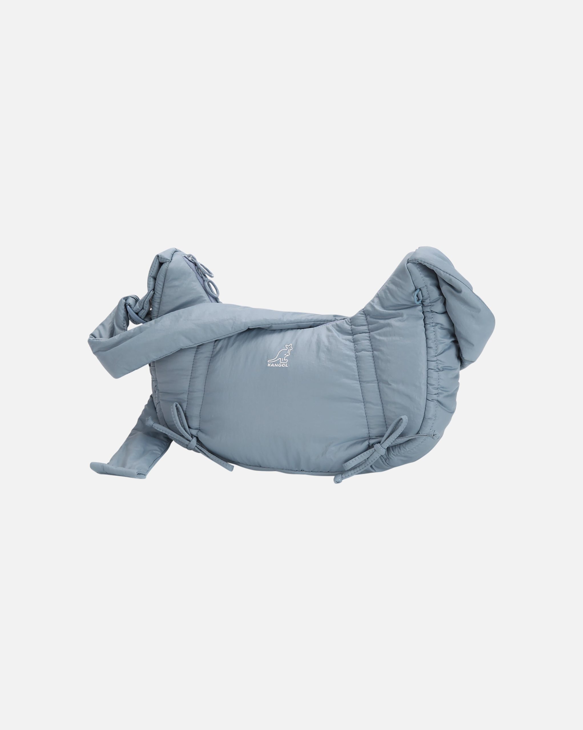 -This lightweight glossy hobo crossbody bag is made from soft-touch fabric which offers a puffy silhouette. Features Kangol symbol embroidery on the front and KANGOL logo embroidery on the back.?Two vertical ribbons at the front adjust the width for versatile shaping and styling.?Inner pocket provides convenient storage.